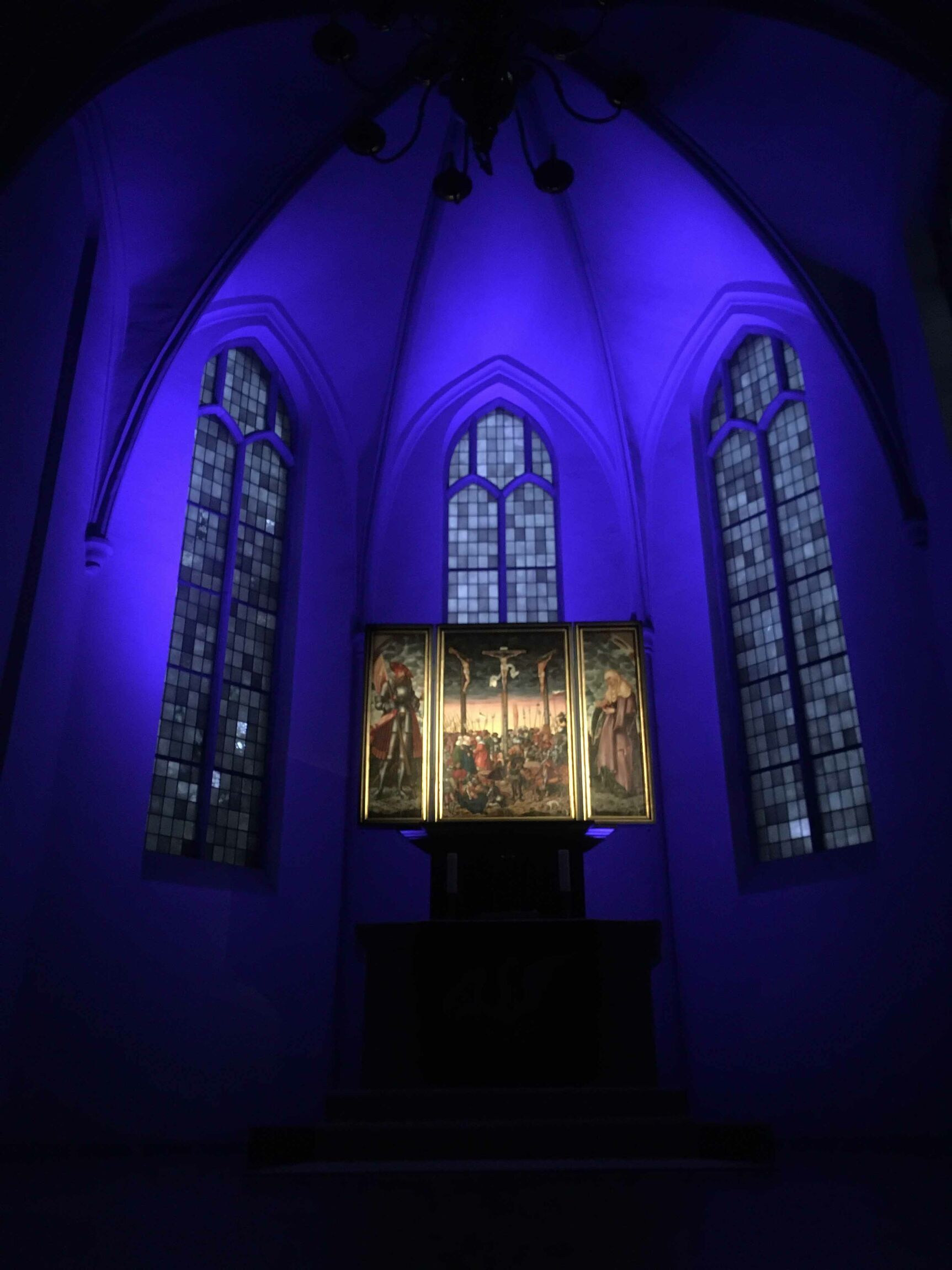 Exemplarisch erarbeiten wir dieses Thema mit der Kreuzigungsdarstellung des Cranach-Altars in der Kreuzkirche Hannover mit einer interaktiven Führung im Kerzenschein mit dem Cranach-by-Night-Team des Mentorats für Lehramtsstudierende Hannover.