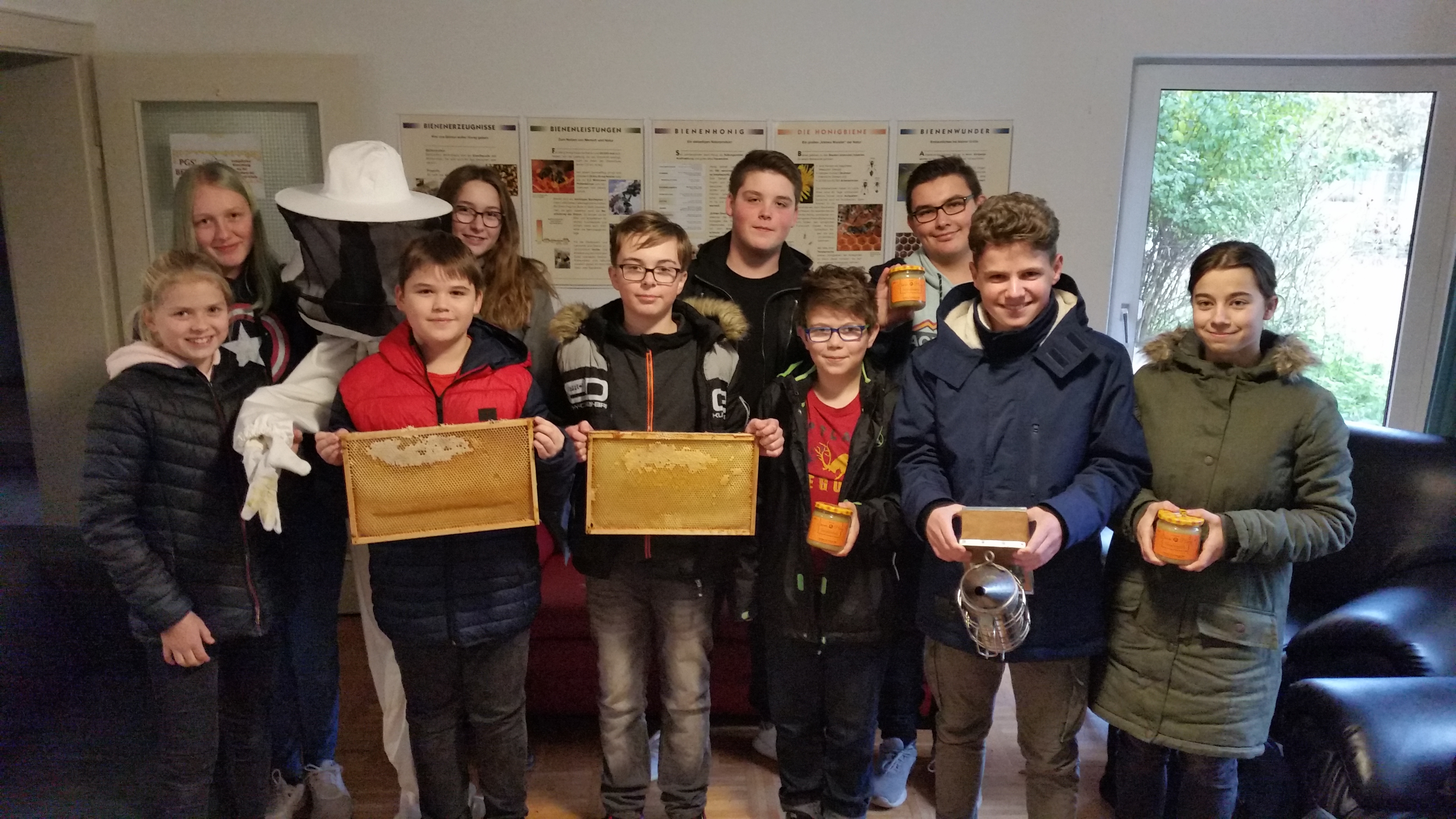 Die zwei Wirtschaftsvölker haben über den Sommer etwa 80kg Honig produziert. Die neuen Fünftklässler bekamen bereits ein kleines Glas zu ihrer Einschulung überreicht. Der restliche Honig wird in der Adventszeit in der Schule angeboten.