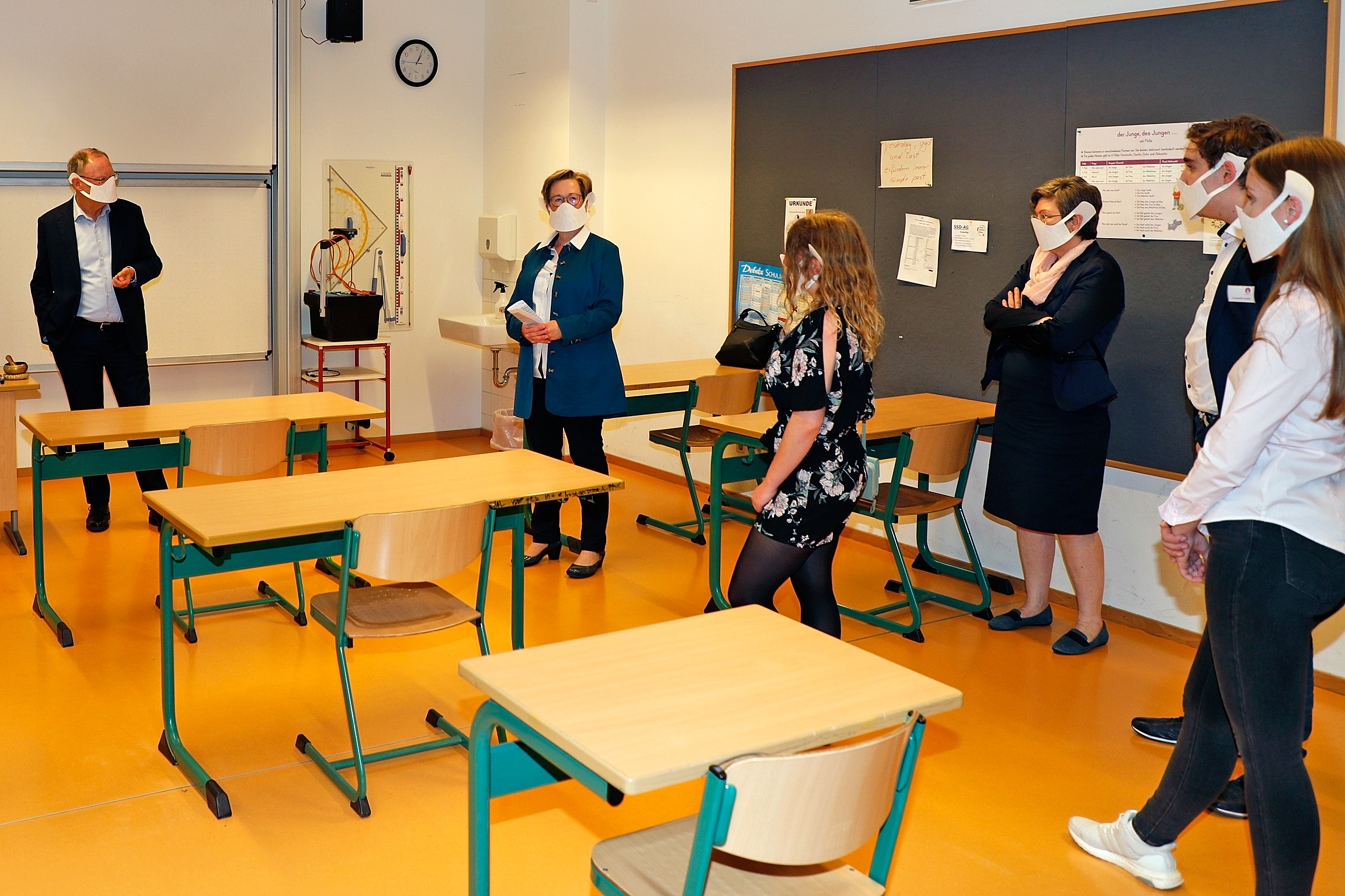 Gleichzeitig bot es sich an, beim Gang über das Schulgelände auf die zahlreichen Umweltschutzprojekte aufmerksam zu machen, die der PGS seit 1996 jährlich wieder die Auszeichnung als Umweltschule in Europa einbrachten. Da die Schule seit über 20 Jahren in der Digitalisierung ebenfalls eine Vorreiterrolle einnimmt, konnte der Ministerpräsident von Schüler*innen und Lehrkräften erfahren, dass die Umstellung auf das Homeschooling ohne große Probleme verlief und in Sachen Selbstorganisation, Eigenverantwortung und Zeitmanagement für die meisten Schüler*innen sehr lehrreich war.