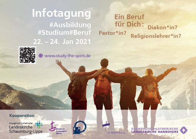 „Study the spirit. Ein Beruf für dich?!“ findet vom 22. bis 24. Januar 2021 im Ev. Jugendhof Sachsenhain in Verden/Dauelsen statt, wo ein Team aus Studierenden, mit der Ausbildung betraute Personen und im jeweiligen Beruf Tätige helfen, die vielen Fragen der Teilnehmenden zu klären. Das Angebot ist kostenfrei und unabhängig von der landeskirchlichen Zugehörigkeit. Die Fahrtkosten werden erstattet.