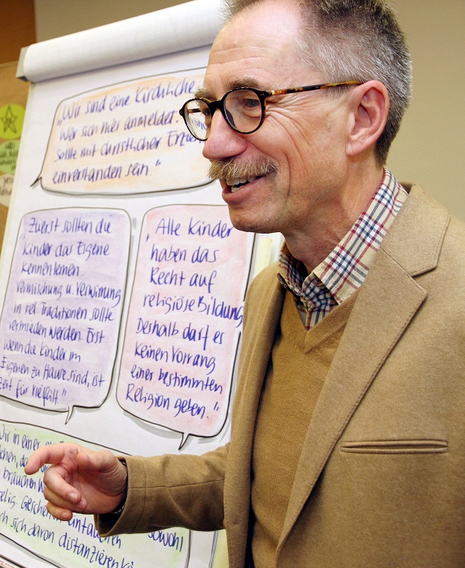 Wie kirchlich darf, soll, muss eine evangelische Kita in einer immer pluralistischer werdenden Gesellschaft sein? Der Pastor Gert Liebenehm-Degenhard, Dozent für Religionspädagogik im Elementarbereich am Religionspädagogischen Institut Loccum (RPI), plädiert im Interview für „Erkennbarkeit und Offenheit“.