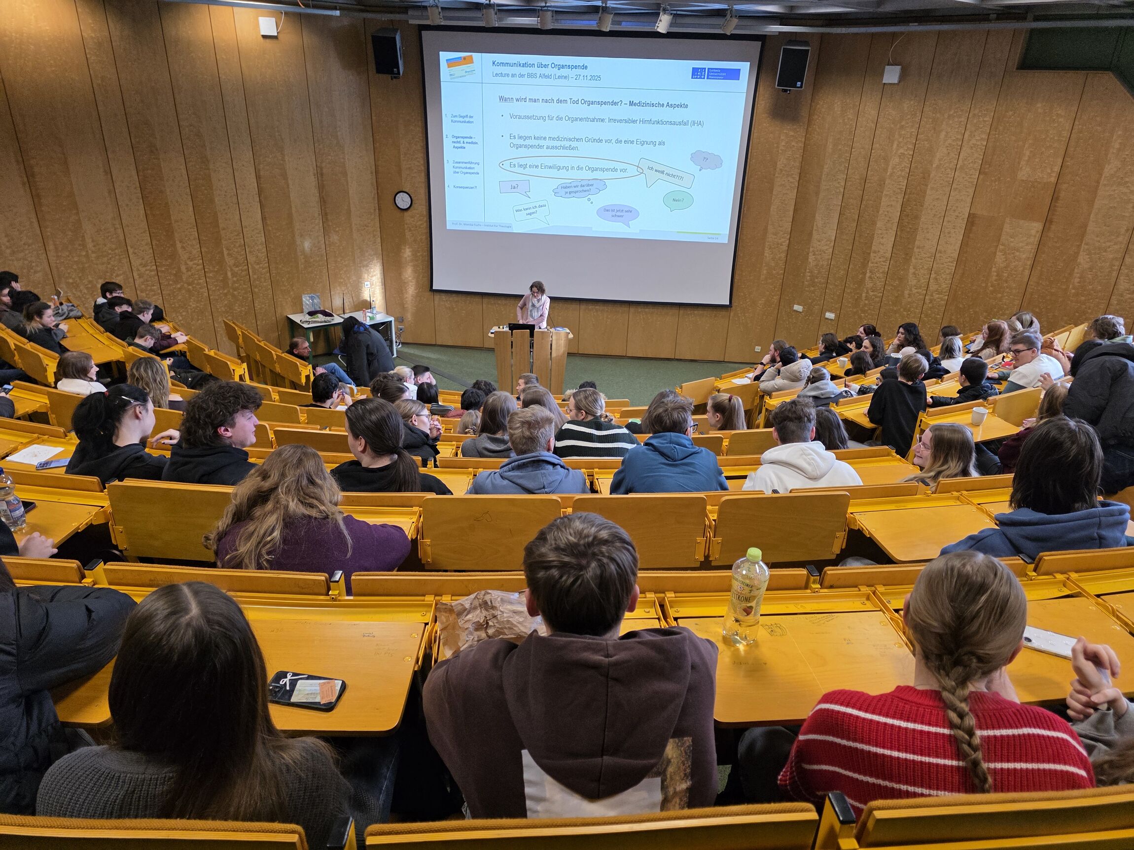Alfeld – Warum gibt es in Deutschland zu wenige Organspender? Was bedeutet es für Angehörige, wenn Verstorbene zu Lebzeiten keine Entscheidung zur Organspende getroffen haben? Wie kommuniziert man seine Entscheidung eindeutig? Über diese gesellschaftlich hochaktuellen Fragen sprach Prof. Dr. Monika E. Fuchs vom Institut für Theologie der Leibniz Universität Hannover jetzt vor Schüler:innen des Beruflichen Gymnasiums, der Fachoberschule und der Erzieher:innenausbildung an den Berufsbildenden Schulen Alfeld (BBS) im Rahmen der BBS-Lectures.