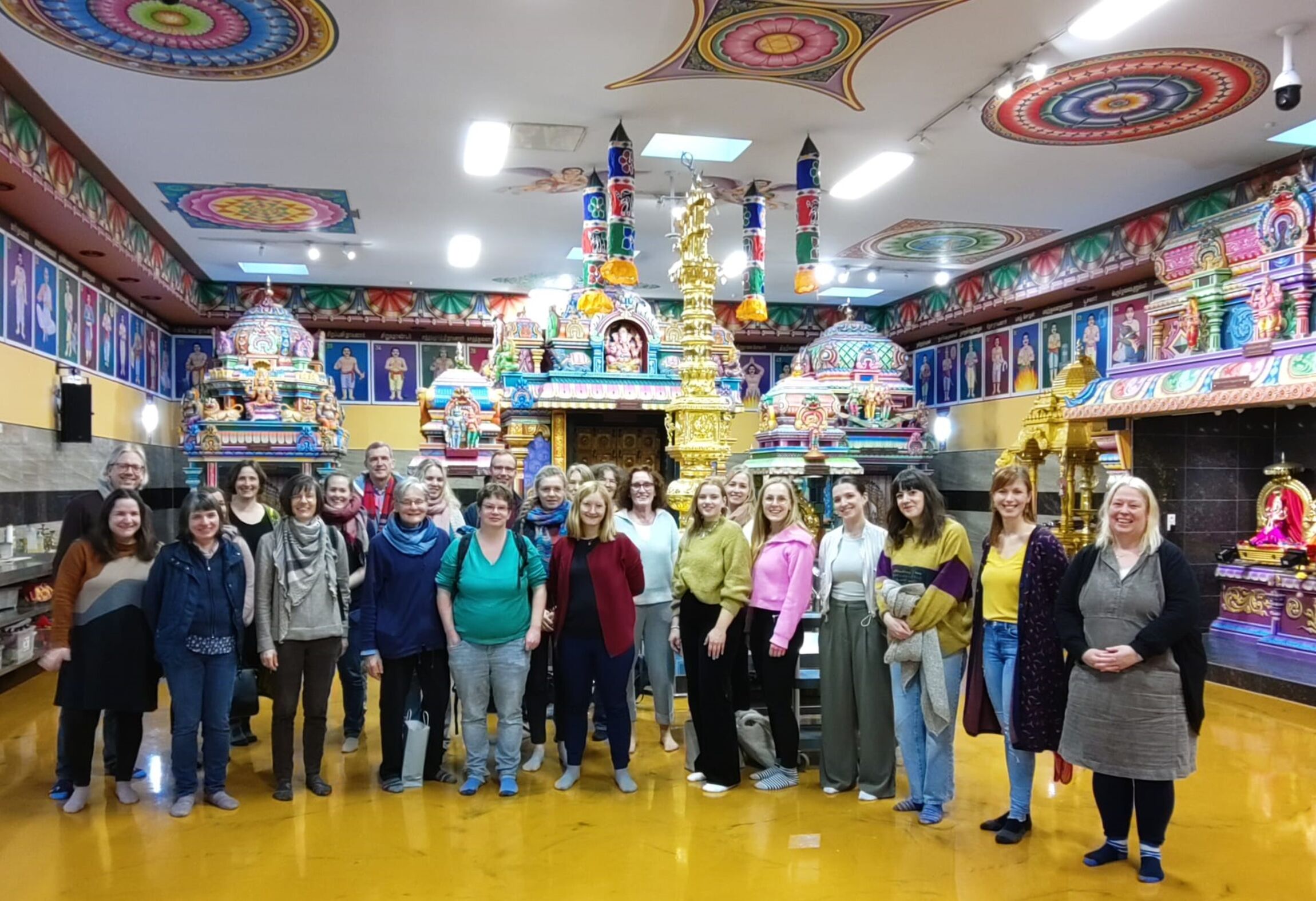 Beim diesjährigen religionspädagogischen Tag am 12.02.2025 stand der Hinduismus im Mittelpunkt. Über 20 Religionslehrkräfte aller Schulformen waren der Einladung des Schulausschusses im Kirchenkreis Stade gefolgt und besuchten den neuen hinduistischen Sri-Varasiththi-Vinayakar-Tempel in Bremen. Der Vorsitzende der Gemeinde, Herr Karalasingam, beantwortete gerne alle Fragen zum Hinduismus als gelebter Religion. Bereits am Vormittag hatten Dr. Ulrich Harlass und Dr. Johanna Weirich gemeinsam einen Vortrag gehalten und dabei die Frage aufgeworfen: Gibt es eigentlich den Hinduismus? Die Teilnehmenden zeigten sich bereichert durch die vielen Eindrücke, Begegnungen und Gespräche.
